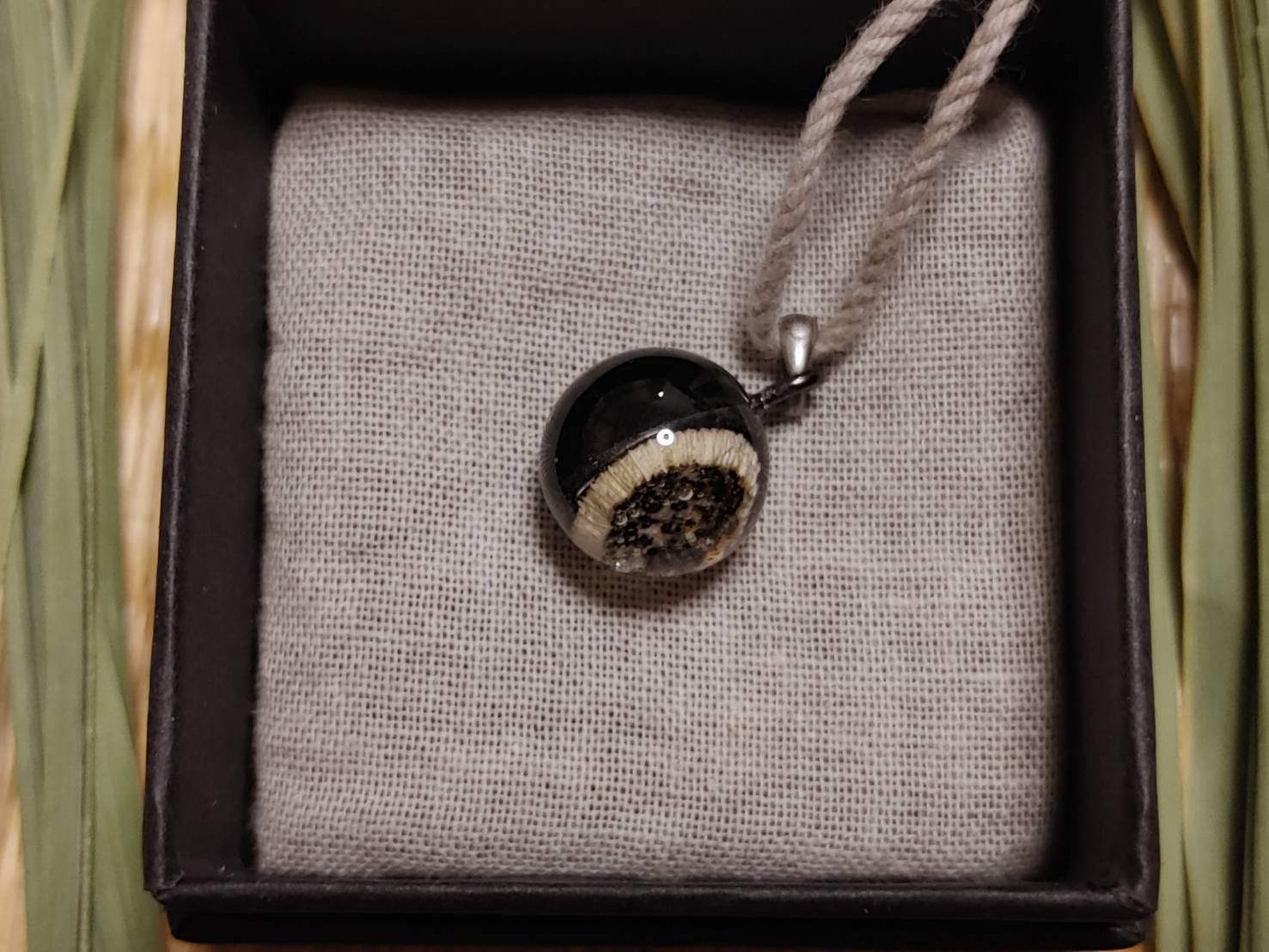 植物と菌(マコモ黒穂菌)の半球を2つに合わせて玉にしました。