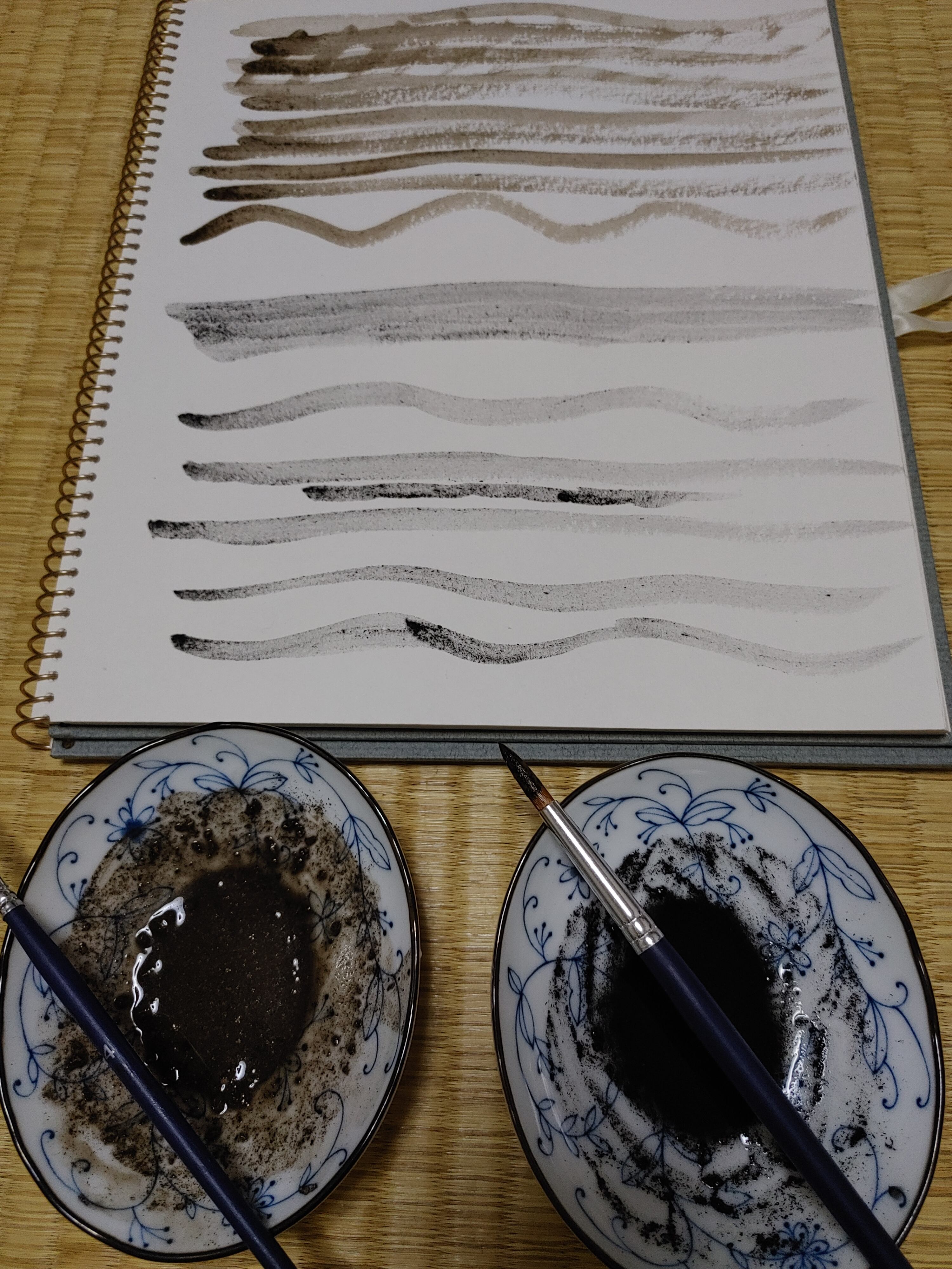 まこも墨は茶色、まこも炭は黒の顔料になります。